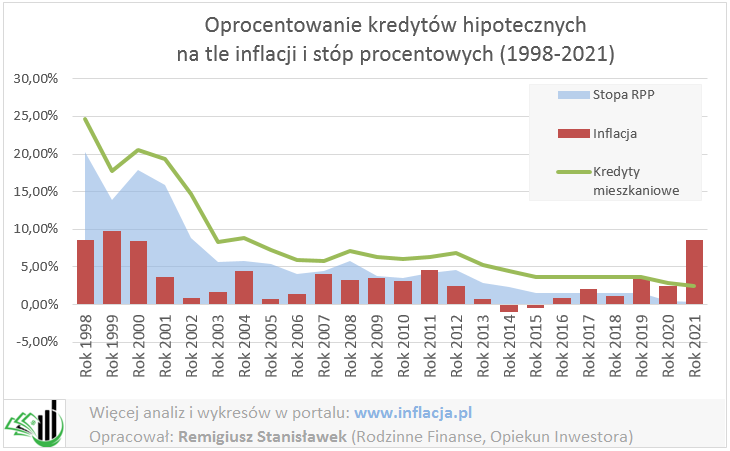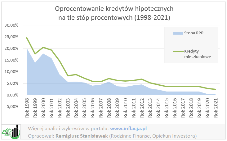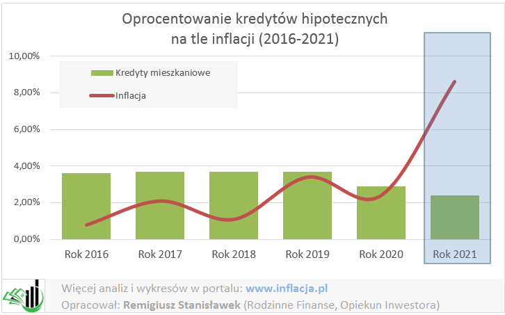 - w roku 2021 średnie oprocentowanie kredytu hipotecznego (czyli wysokość zapłaconych odsetek) wyniosło 2,40%