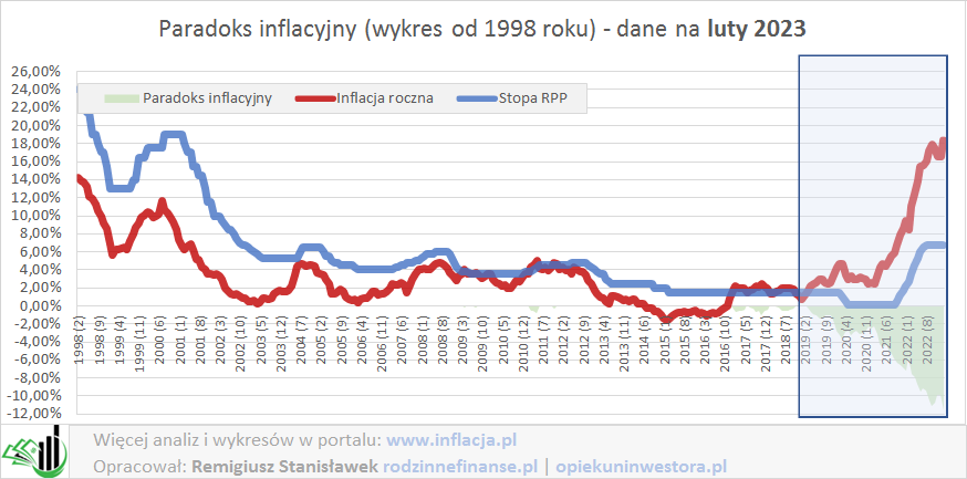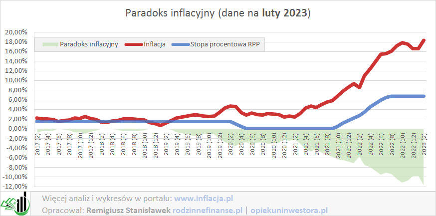 Paradoks inflacyjny: utrzymująca się sytuacja w której stopy procentowe RPP są niższe niż odczyty rocznej inflacji