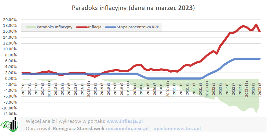Paradoks inflacyjny: utrzymująca się sytuacja w której stopy procentowe RPP są niższe niż odczyty rocznej inflacji